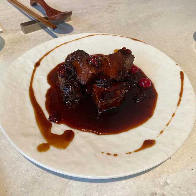 酢豚がクランベリーと一緒に食べるととっても美味しかった!柔らかくてソースも絶妙な味付けで最高でした