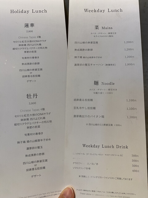 ※平日ランチタイムは、平日ランチメニュー、ランチコース、火鍋コースのみで承っております。(事前予約はコースのみ承ります) |