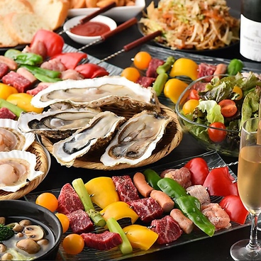 恵比寿の夜景と牡蠣で夏を満喫♪夏限定の屋上ビアガーデンは、最大60名様までご利用可能で、雨の日でも大丈夫です!会社帰りに仲間と、カップル、女性同士…など様々なシーンで◎♪牡蠣やお酒に合う料理が楽しめるビアガーデンコースも人気です!嬉しい飲み放題付きで、カキフライなど全7品のBコース4000円とローストビーフなど全9品のCコース5000円をご用意♪室内テーブル席もございますので、ぜひご利用ください!