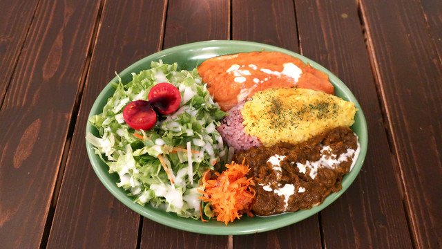 ボリューム満点のサラダとインドの本場仕込みのカレーを食べたいならsunnycafe! 11:00〜15:00のランチタイムはボリューム満点ワンプレートが¥900〜♪ 夜は簡単なおつまみとお酒をご用意しております!もちろんカレーもございます♪ お一人様でも入りやすく、皆様に愛される丁寧な接客を心がけています♪