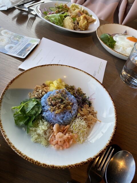 都心にいながらにして、フレッシュなハーブやスパイスが香る色鮮やかな料理が楽しめて、異国情緒な空間で癒される。