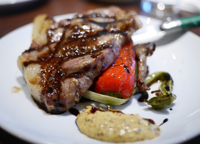 おかわり無料パンはデフォルトでかなりボリュームあり。そのままでも味が付いているけど、オリーブオイル付けたり、パスタソース絡めたり。そして大好物のカルボナーラ。最近流行の生クリーム使わないローマ風ではなく、ジャパニーズスタイルの生クリーム系。こっちも結構好きだったり。自家製パンチェッタの塩味が生クリームとたっぷり振りかけられたチーズに程よくアクセント。しっかりとアルデンテに茹でられたパスタも完璧。うん、この価格のランチで食べるカルボナーラとしては上出来過ぎ。ここまでで1100円のランチとしては満足してしまうところですが、メインも別にありますw。当店名物の豚肩ロースステーキ。かなり厚みがあって、クラシカルなソースも食欲をそそる。焼き野菜もゴロゴロとたっぷり入って、かなり腹パン幸せ。久々に食べてみて改めて凄いコスパw。