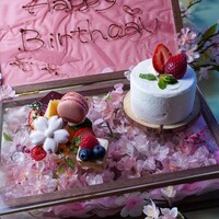 乾杯酒付き!春のアニバーサリーディナーコース!桜を敷き詰めたメッセージ付きケーキボックスに炎のカルボナーラ、牛フィレ肉のロッシーニにラクレットチーズをかける贅沢な全5品!(3月16日~4月19日)5品