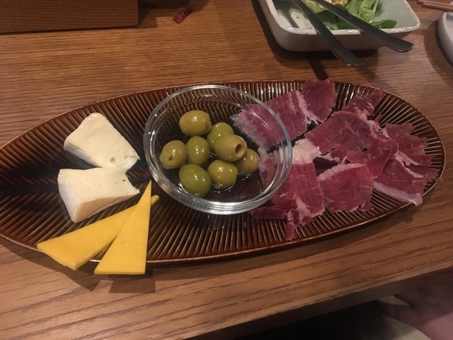 生ハムとチーズ2種類、オリーブです。