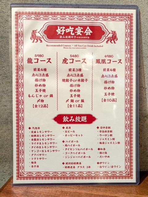 今回は人気コースの11品飲み放題付き、虎コースをいただきました!