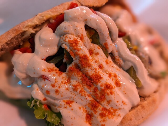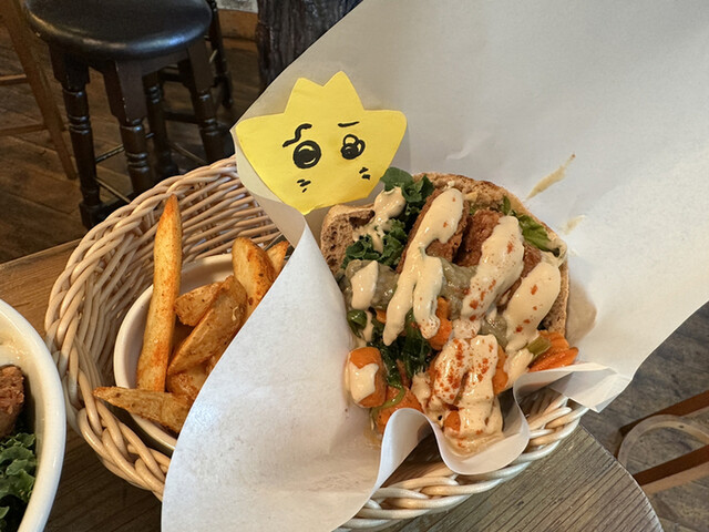 ビーガン料理とのことなので物足りないかもなーと思ってましたが、そんなコト感じさせないジャンクさがあって大満足!! 「ファラフェル」という、ヒヨコ豆のコロッケと、中東地域のゴマ「タ... 詳細を見る