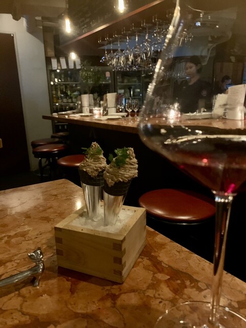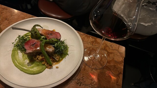 三連休最終日、気分転換に美味しいものを食べようと19時半頃お伺い。いつも混雑している印象ですが、この日はそこそこの混雑具合で入店できました~ オープンキッチンをぐるっと囲むカウンター席がお薦め!暗めの店内の雰囲気もステキです!お料理の写真は撮りにくいですが笑 まずは桃のベリーニとビールで乾杯... 詳細を見る
