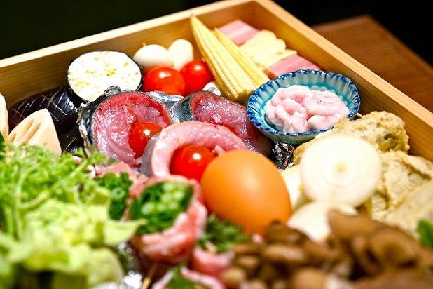 名物和牛すじ煮込み、厳選天ぷら串3本、山本家名物かしわ天、黒毛和牛炙りすき焼き卵飯など、素材にこだわった贅沢なコースです。泡(スパークリング)も日本酒3種類を含む2時間の飲み放題付。飲み会など各種ご宴会に。