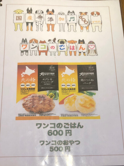 そしてワンコのごはんやおやつのメニューもありますよ。美味しそうだワン