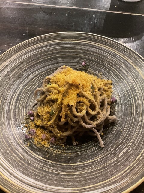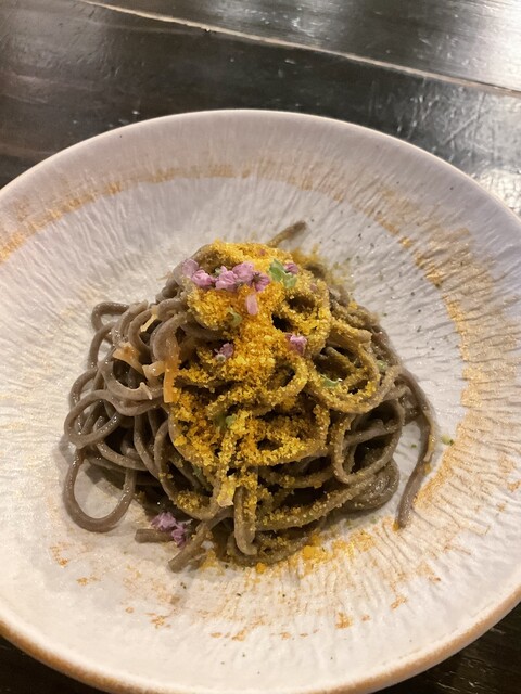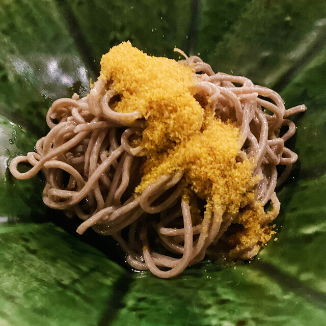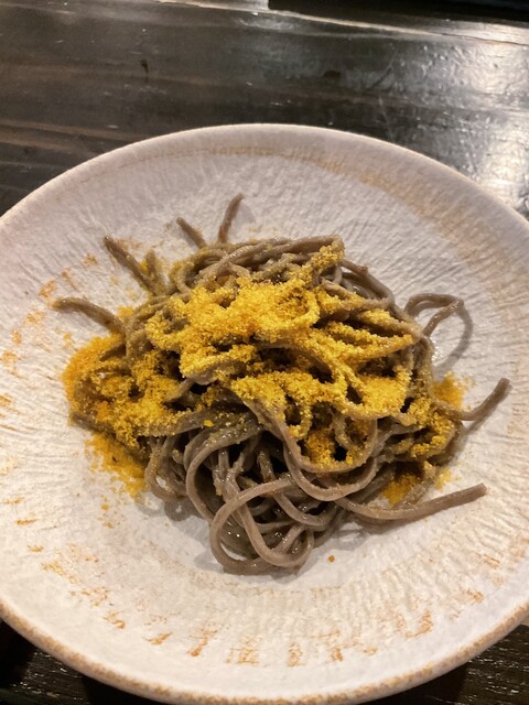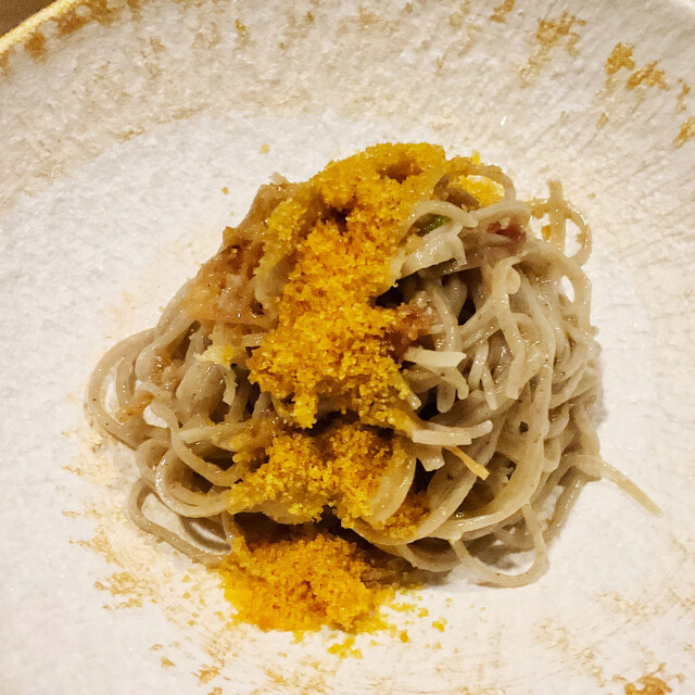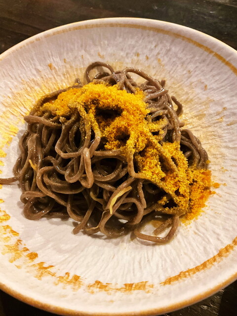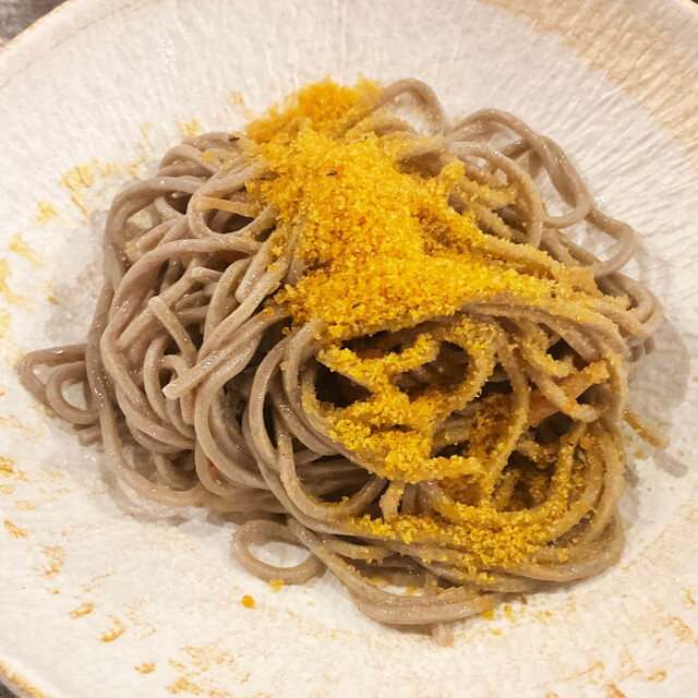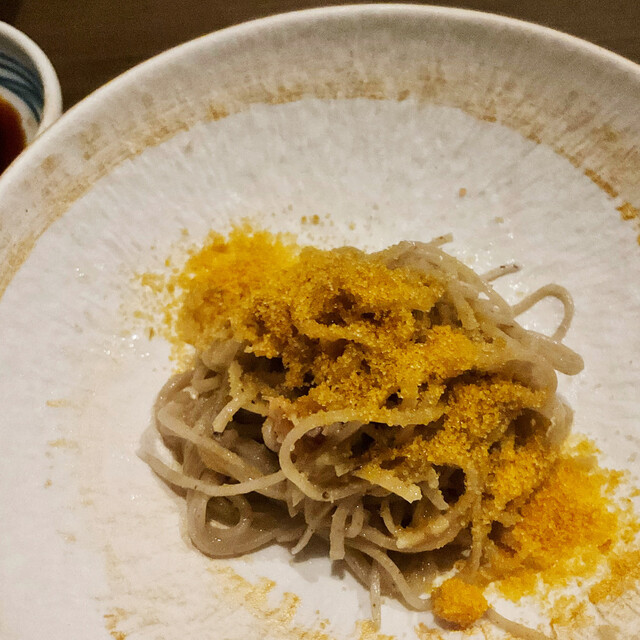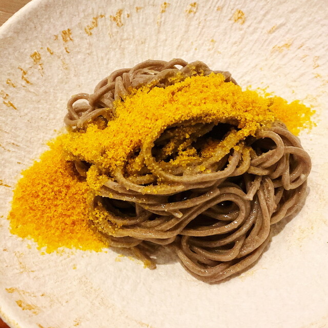 黄金色のカラスミパウダーの掛かったお蕎麦!