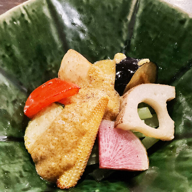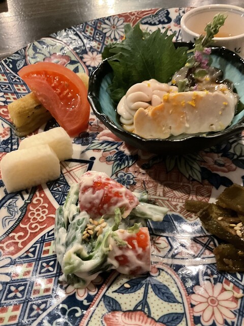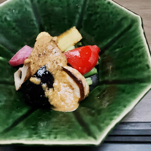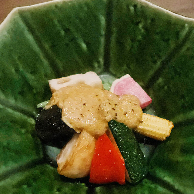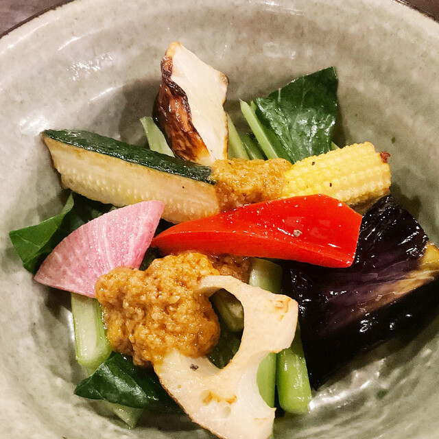 前菜の胡麻和えの胡麻ダレがめちゃくちゃ美味しいと思ってましたが、夏野菜にも合う!茄子、ヤングコーンなど様々な野菜が丁寧に調理してあります。
