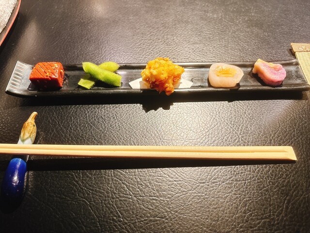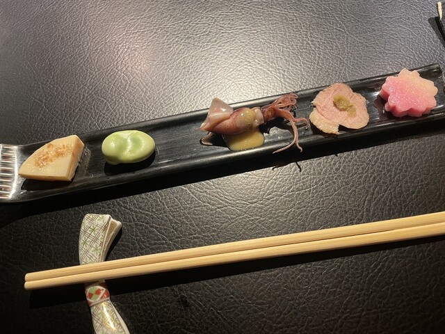 恵比寿の『鮨染井』で11,000円のおまかせコースをいただきました。先付けから幅のある品がでてくるのは楽しいものです。