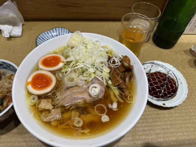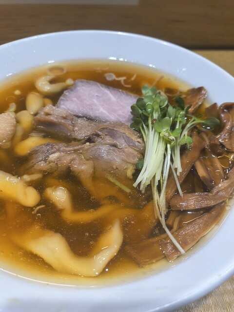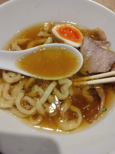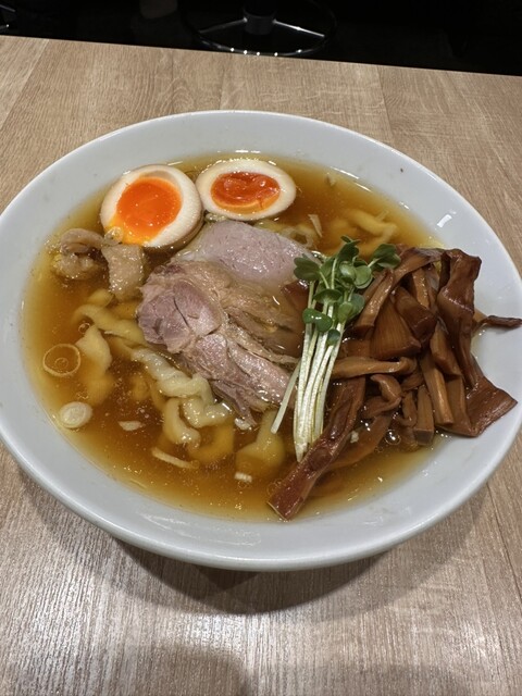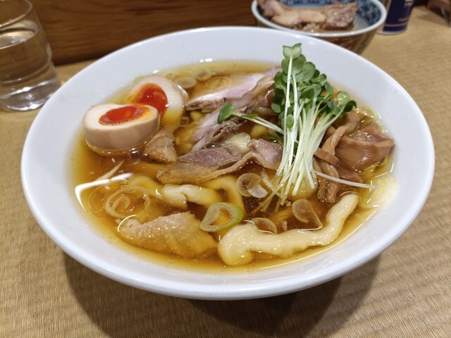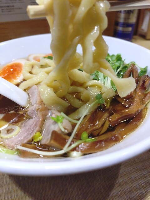 まず驚いたのが、存在感抜群の極太麺。もちもちとした食感で、噛むほどに小麦の旨味が広がります。スープは親鶏の出汁が効いた淡麗辛口。コク...