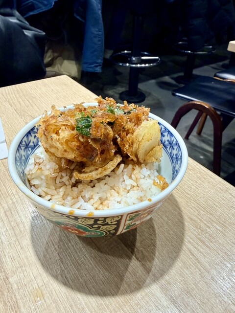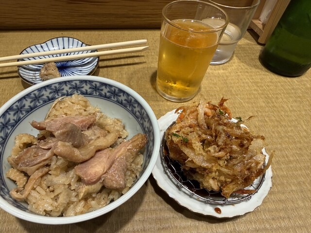 ・かわ、かき揚げ君、親鶏飯、ビール小