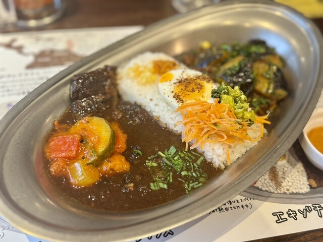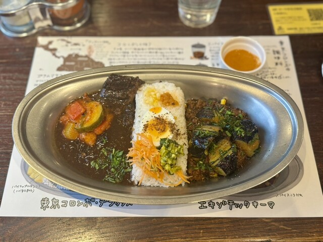 とろける豚肉がたまらない「東京コロンボDX」とクセになる「マトンキーマ茄子」のコンボ!