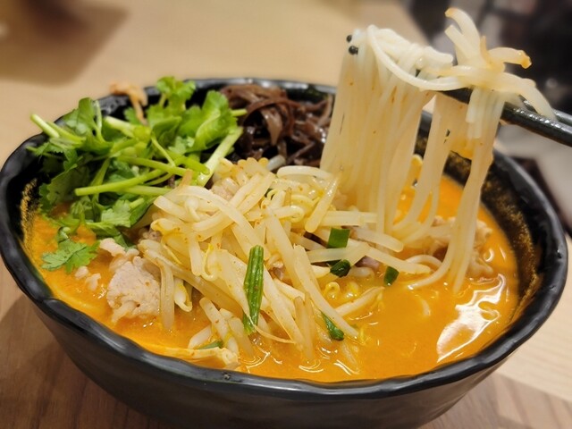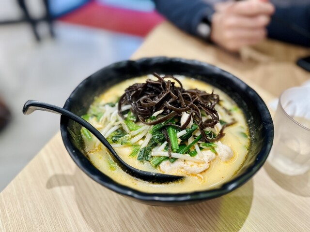 恵比寿駅西口出て、徒歩2、3分の場所にあります。平日のオープン同時に行きましたが、混み合うことなくスムーズに入店できました。 ランチDの選べる3つの具材コースを選択。 スープはマーラー、辛さレベル3、具材は鶏胸肉、キクラゲ、小松菜。麺の量は通常サイズでオーダー完了!そして絶対ベストマッチする... 詳細を見る