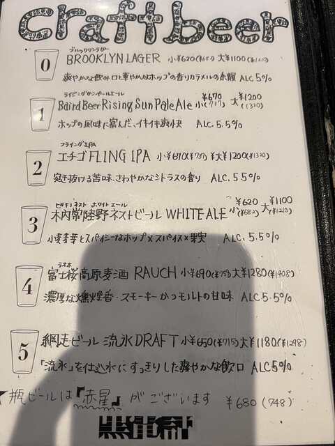 クラフトビールメニュー例(品は入れ替わります) (by お店)