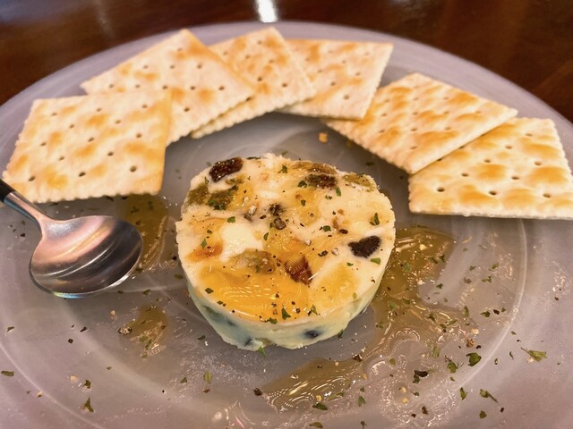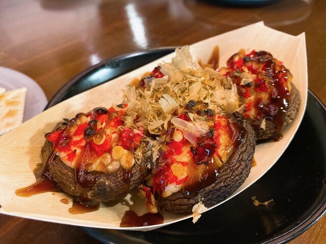 椎茸の上にたこ焼きみたいな味付けの
