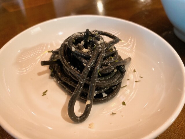 お通しは黒い...パスタ!