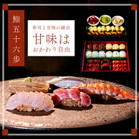 ~おまかせ~頂きコース(寿司13貫+お造り4種+小鉢3点+一品2種+茶碗蒸し+お椀+甘味食べ放題(6品)30品