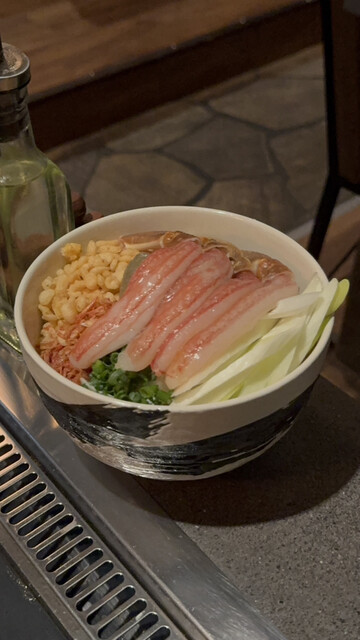 店名:恵比寿もんじゃ 梵天 ・フォアグラやトリュフなど高級食材を使用した「高級もんじゃ焼き」がリーズナブルに楽しめるもんじゃ焼き屋 ・スタッフが焼いてくれるフルアテンド式で、匂いも全く気にならない最高の空間 【注文した物】 梵天コース(2時間飲み放題付き) ¥6,000 ・前菜 本日の前菜 最中仕立て ・菜物 季節野菜のサラダ ・鉄板 お好み焼き ・焼物 A5ラン... 詳細を見る