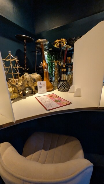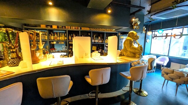 お店は夜は“シーシャバー”なので、カウンターにはいくつかのシーシャが並べられており、店内の作りや雰囲気はやっぱり夜系です。でも全然ケバケバしさはなく、オシャレな雰囲気なので、隠れ家的カフェとして十分需要ありそうです。恵比寿周辺のカフェじゃどこも混んでいるので、いまなら完全に“穴場”です。