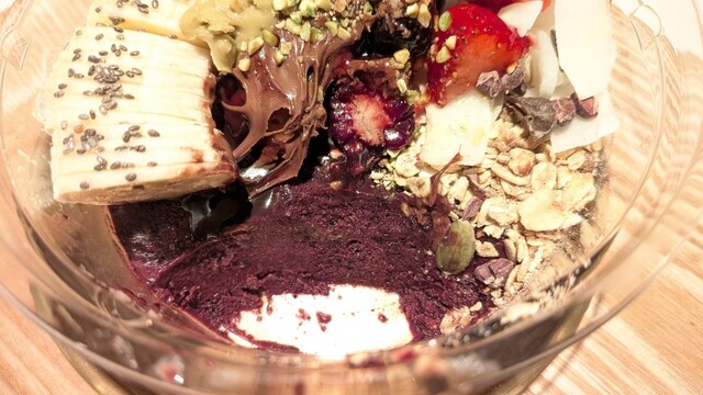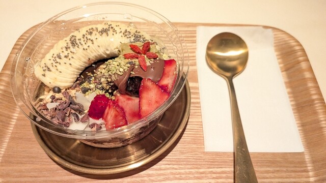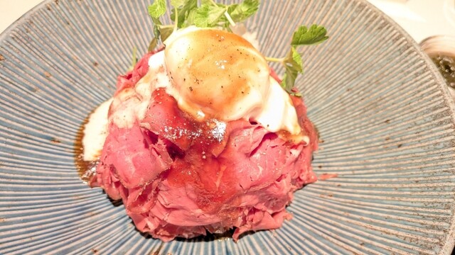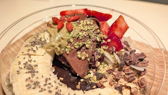 フードのローストビーフは無添加飼料で育った鮮度の良い赤身肉、アサイーは砂糖不使用などヘルシー特化で、女性に優しい。共に盛り付けが上手く、美味しかったです。半数が曲線のカウンター席なのでお一人様でも気兼ねなく長居できると思います。QRコード読み込みのスマホ注文式でした。
