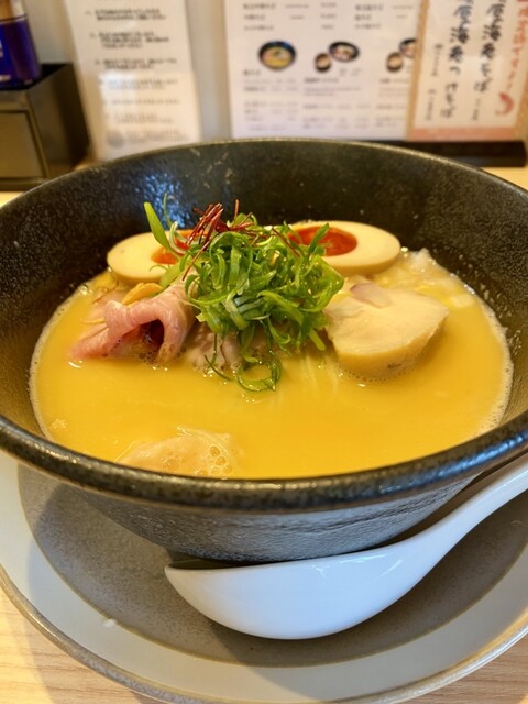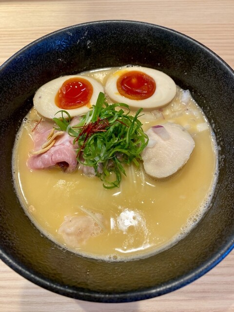 年末の遠征でランチに立ち寄りました。 土曜日の13時、到着が遅くなり行列を覚悟してましたが、駐車場もいくつか空いていて、待ちもなく、すぐに案内された。しかもテーブル席に。 こういうタイプのラーメン店で券売機方式じゃないのは久しぶりかもと思った矢先、テーブルでタブレットで注文なわけね。でもラーメン... 詳細を見る