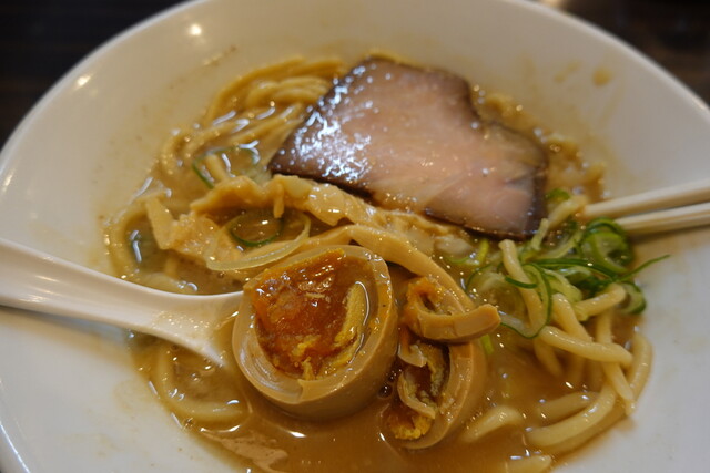 【半田山/静岡 浜松】¥1,100 日曜の14時過ぎに訪問。 駐車場は店前の2台分のみ。 公共交通機関での来店がオススメ。 少し重めのドアを開けて店内へ。 店内はゲストで賑わっており、L字カウンター9席・待合の長椅子が共に満席という状態。 食券機から購入。現金のみ、お札は1,00... 詳細を見る