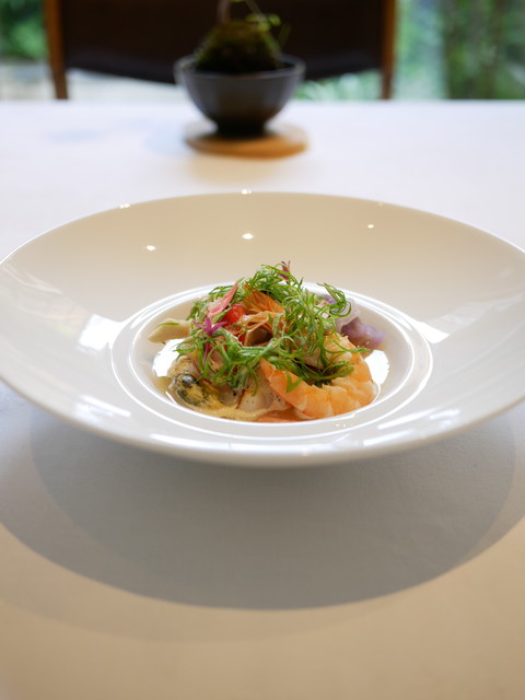 すべての素材に眠る“ミネラル”の特長を多角的に見極め、火入れする。ここ【ラ・ビオグラフィ】の料理で使用される食材たちは、ストレスを与えることなく加熱されることでその旨みを格段にアップさせ、最大限の輝きを放つのだ。滝本氏の知識と技が創り出すのは、味・色・香・形のすべてに配慮がなされた、伝統的でありながらも独創性に富む一皿。小さな一軒家が奏でる自然への敬意に満ちた心地よいハーモニーを、ぜひ体感したい。