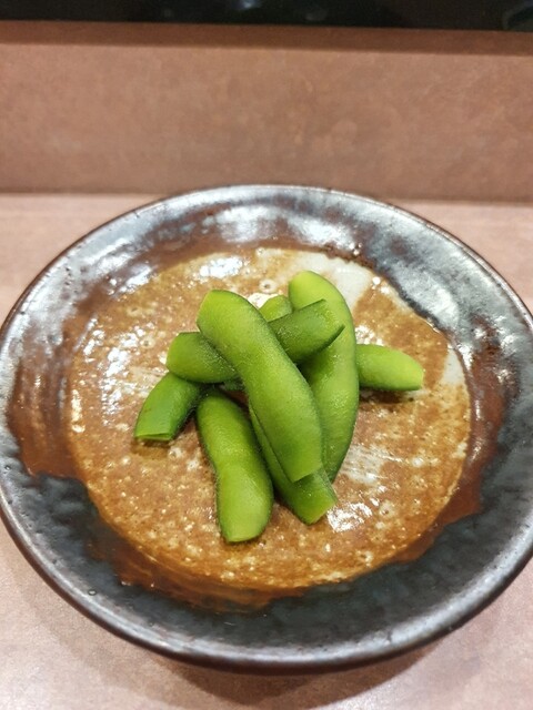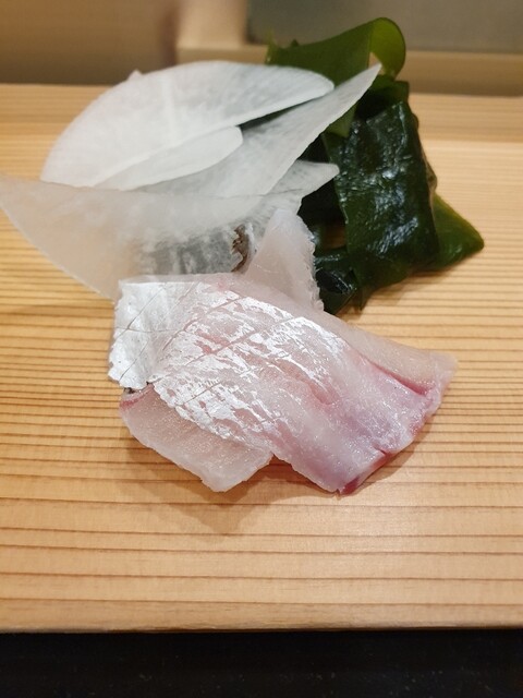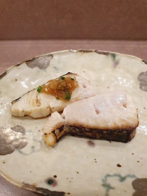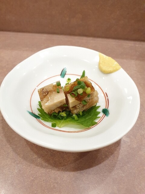 生ビール 塩茹で落花生(千葉) 鰤三種類料理(小樽) 鰤トロしゃぶ しょうがと葱で 塩と辛い山葵で 握り 鮪(165㌔大間) 鰆炙り 生い... 詳細を見る