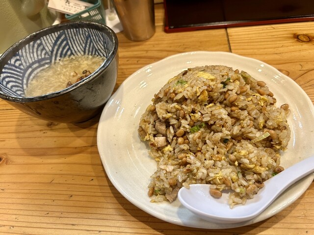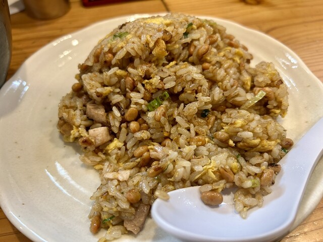 「極麺 青二犀」森山店主による焼飯メインの年末特別営業に初参戦。年越しそばや吊るし焼チャーシュー持ち帰りも予約していました。 注文したのは 「納豆やきめし」 納豆めちゃ合う!目の前でガシガシ香ばしく炒められた青二犀炒飯。大盛りにしなかったのを後悔(笑)。付いてくるスープもめちゃ美味いな... 詳細を見る
