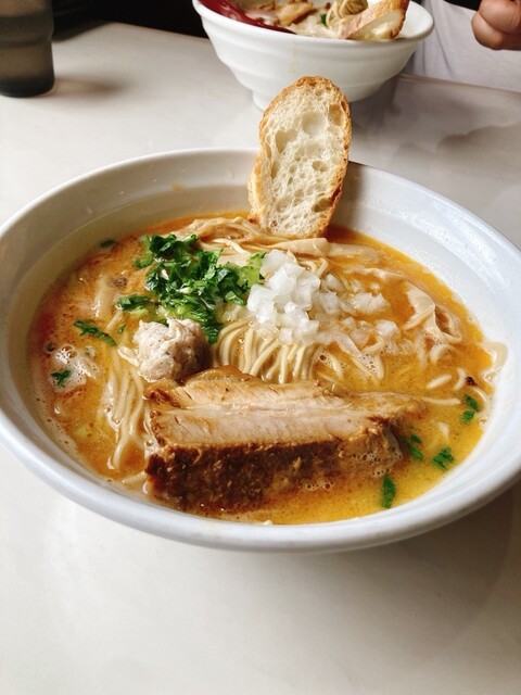親しみやすい雰囲気のお店で絶品ラーメンが楽しめます♪ 4回目の来店 7ヶ月ぶりぐらいです 水曜日11:15到着、一番乗り 今回はこちらを発券 黒つけ麺1200円 12分後着丼 もっとドロドロの高粘度つけ汁を想像してたけどわりとサラッとした口当たりの中濃スープで、マー油に... 詳細を見る