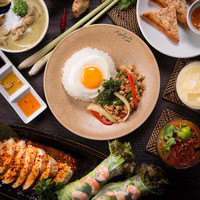 ランチでも人気の「ガパオライス」や「タイ海老トースト」、ビールやワイン、オリジナルカクテルにあうアペタイザーも種類豊富にご用意!食後にはアジアンデザートとコーヒーをお楽しみいただけます。