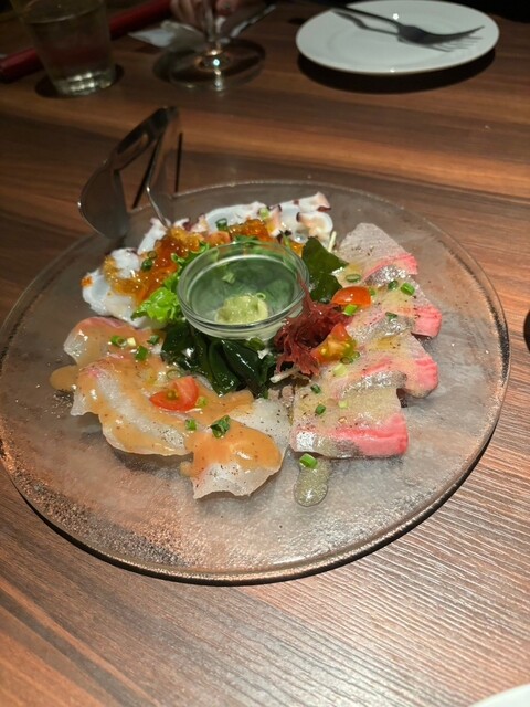知人から、『カルパッチョが食べたい』と言われ、必死で探しました、カルパッチョをウリにしているお店を。そんなお店が本当にあるのか?あったんです、ここに。 ちょっとした歓楽街的な細い路地に存在しているイタリアン。階段を下っていくとお店がありますが、場所的にも雰囲気的にも隠れ家と呼んでもいいぐらい。 席に着き、最初にメニューの紹介をしてくれます。開口一番、オススメに挙げたのが、やはりカルパッ... 詳細を見る