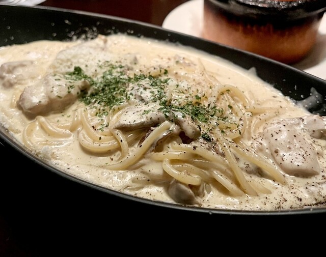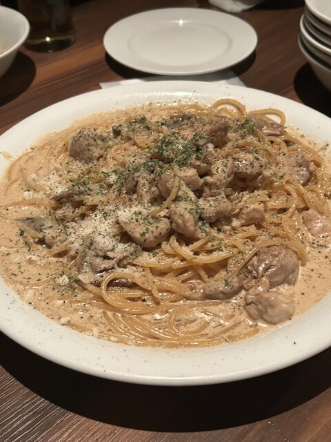[コース予約で]お一人様+500円で「かにの身と蟹味噌のクリームパスタ」に変更
