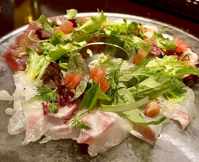 まずは「鮮魚のカルパッチョ」。その日一番の鮮魚の旨味を、爽やかなソースが引き立てます
