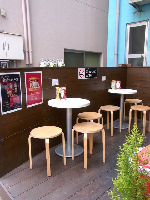 1階外喫煙席3テーブルあり。 2020年4月1日より受動喫煙対策に関する法律(改正健康増進法)が施行されており、最新の情報と異なる場合がございますので、ご来店前に店舗にご確認ください。 |