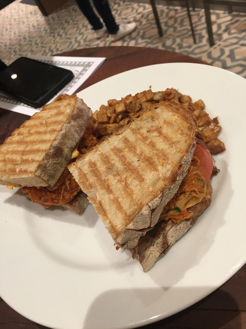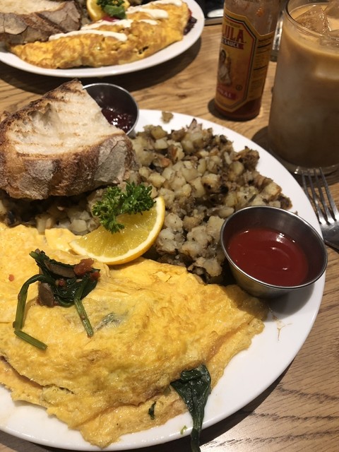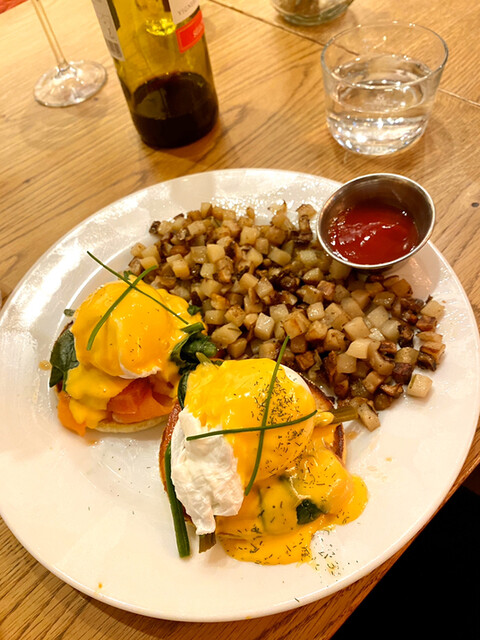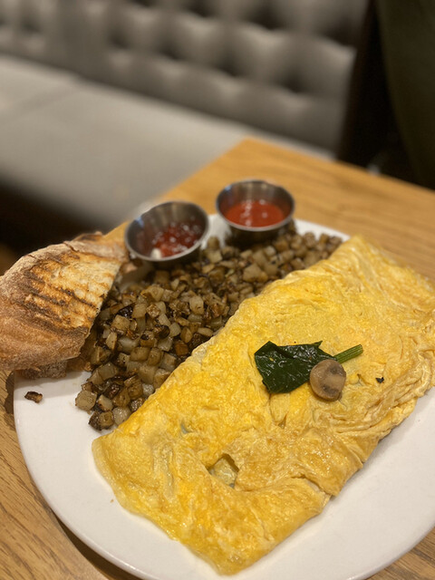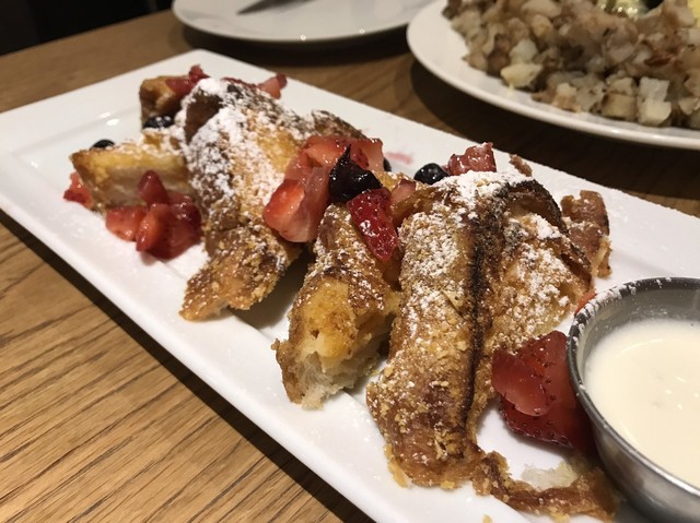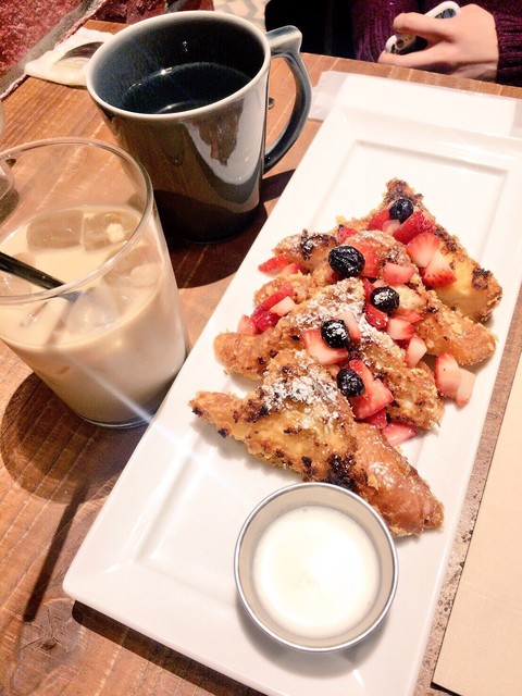 フレンチトーストをオーダー。フレンチトーストの間にバニラアイス?とイチゴジャムか挟まってます。
