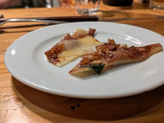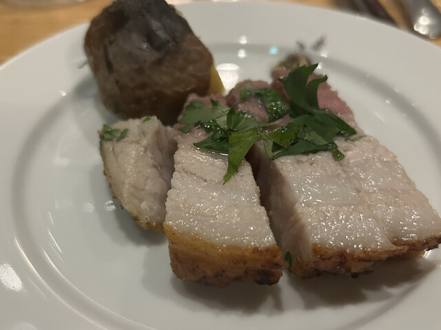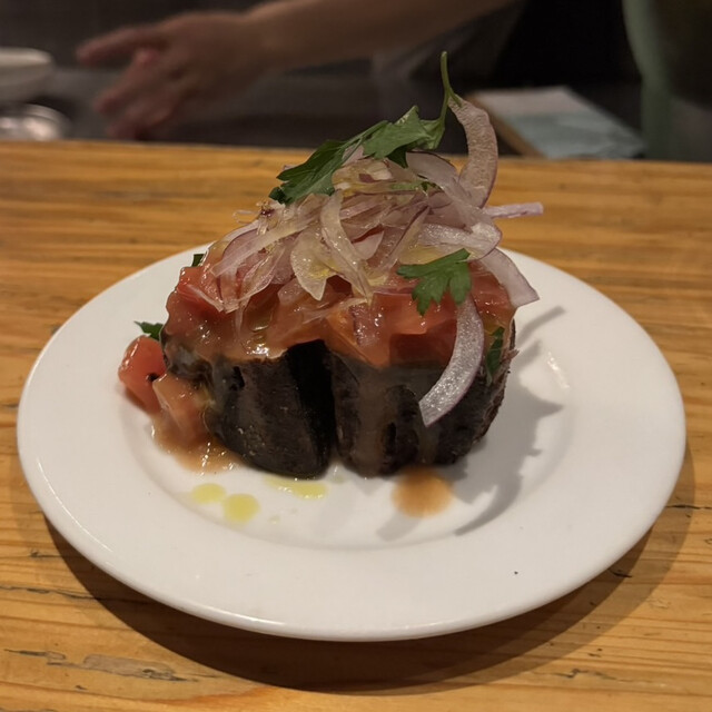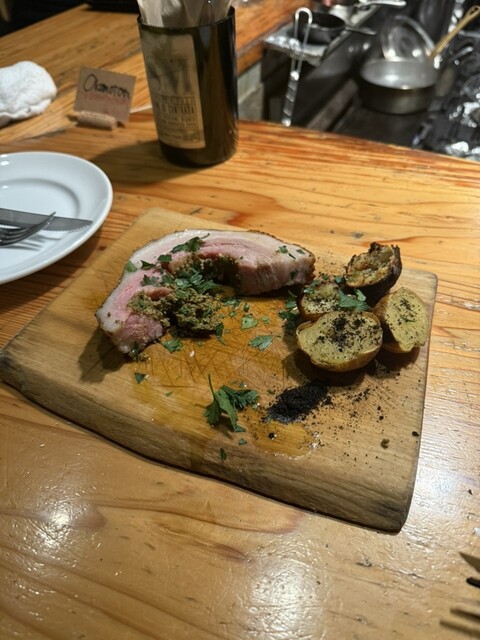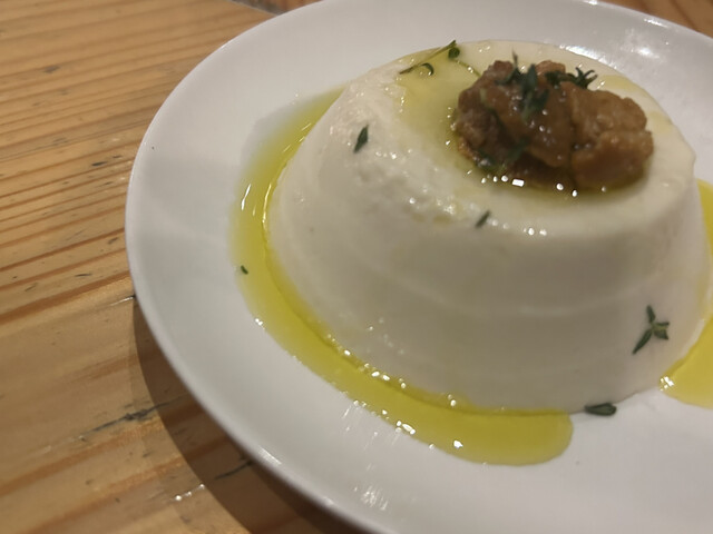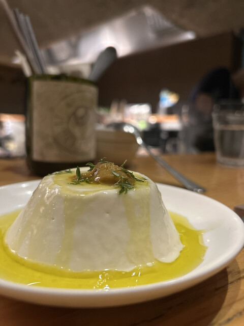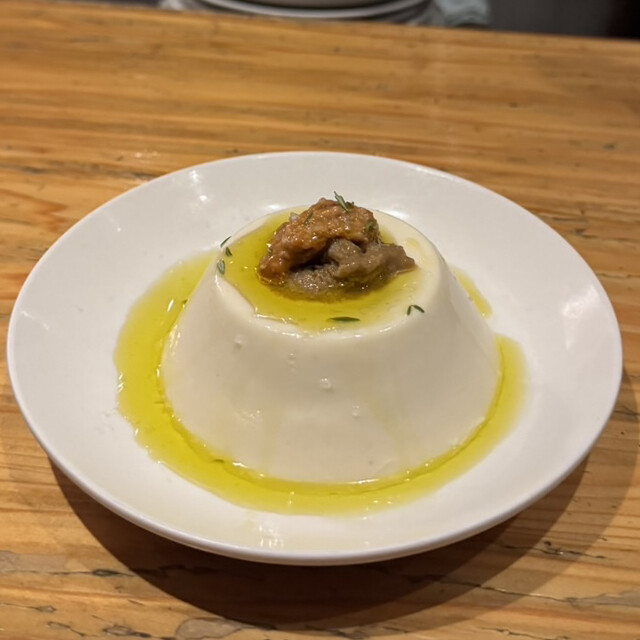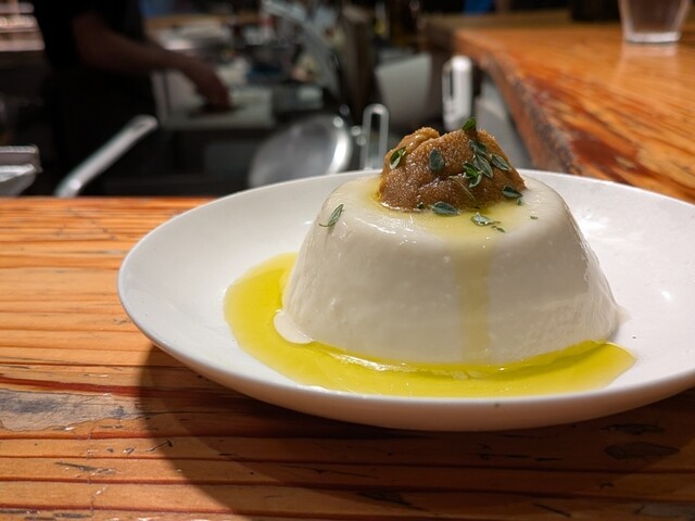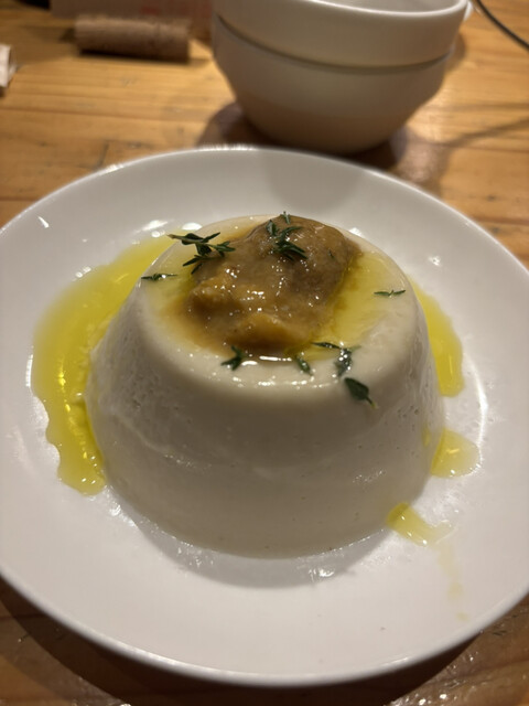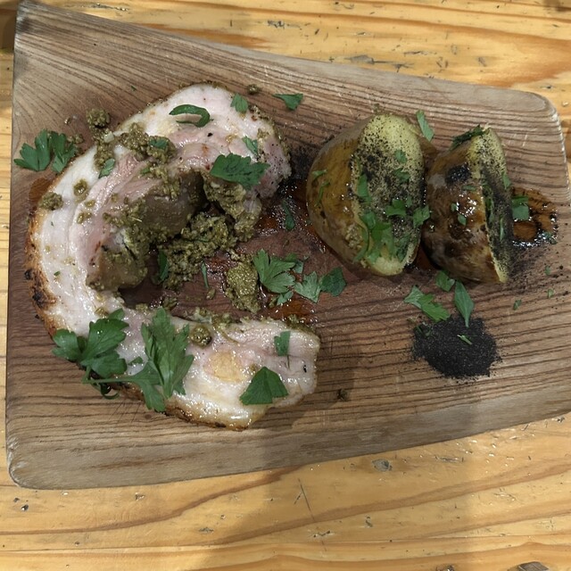 アラカルトオーダーで、雲丹乗せとうもろこしの冷奴、名物のポルケッタ、ジェノベーゼ、その他。