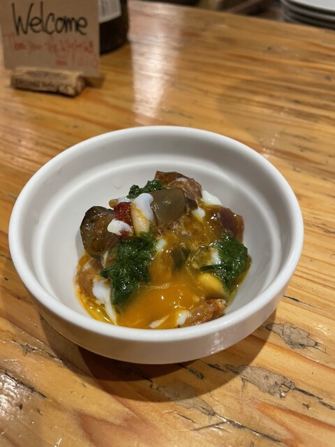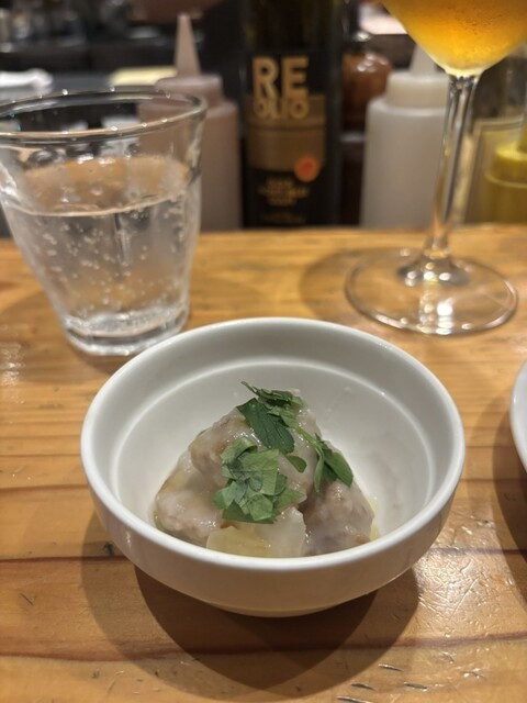 とりあえずビールではあるが、飲み物メニューは豊富で何故か中国茶3種類水出しも置いてる。グラスも豊富そうな感じでワインをいろいろと楽しめそうな店として期待が高まる笑