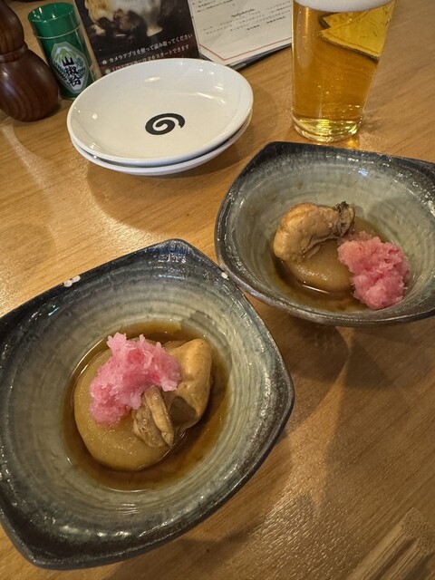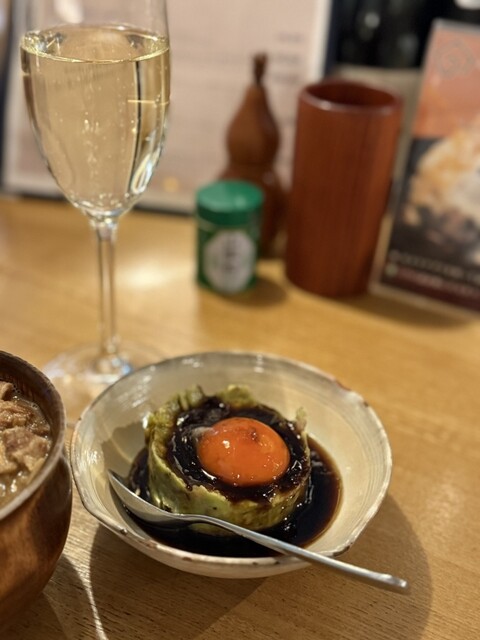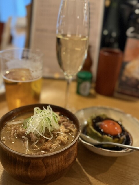 ベースの料理はもつ煮込みや、しろもつ、レバーや蟹味噌大根など。どれも華やかで逸品のクオリティがとても高い。。そして、お酒は基本ワインに合わせ...