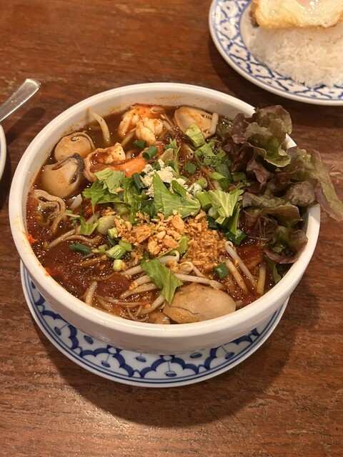 料理は想像以上にボリュームがあり、トムヤムクンビーフン、パッタイ、揚げ春巻きの3品を注文しましたが、揚げ春巻きを食べ切れそうにな...