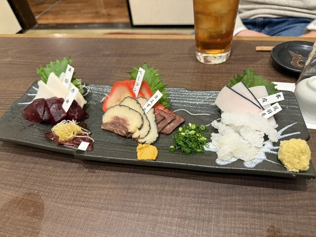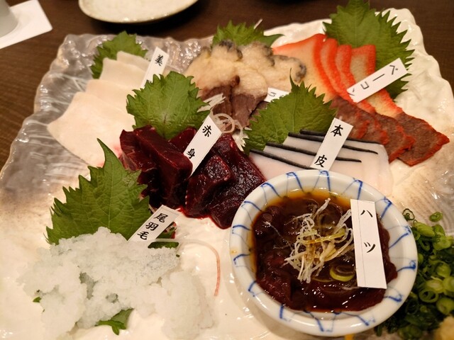初めて伺いました。 海外からのゲストを連れて、 鯨肉を食べることが出来るので 初めはびっくりしてましたが、美味しいと言って食べていました。 この日のオーダーは、 鯨刺身全盛り 3人だったので、一切れづつ食べられました。海外ゲストは鹿の子が気に入ったみたいです。 鯛と... 詳細を見る