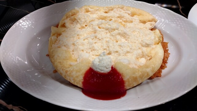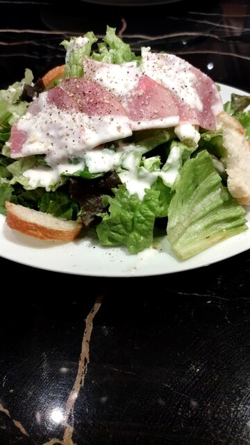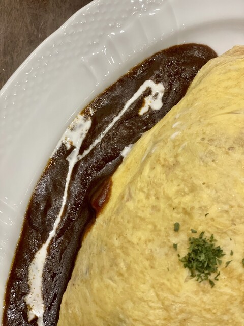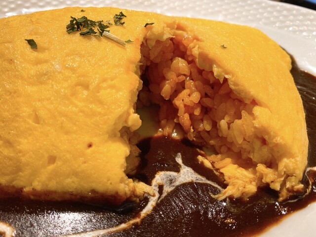 平日20時頃来た、店内はほぼ満席 スフレ卵のオムライスとハムサラダを注文、1600円 まず2分ほどでハムサラダ到着、シーザードレッシングのかかったレタス中心のサラダ... 詳細を見る