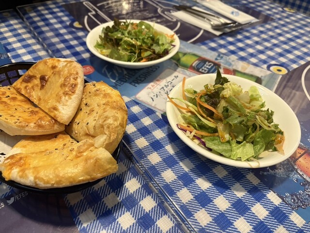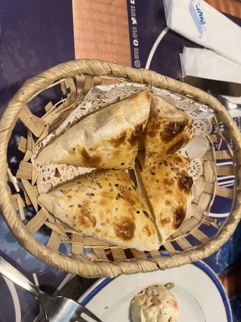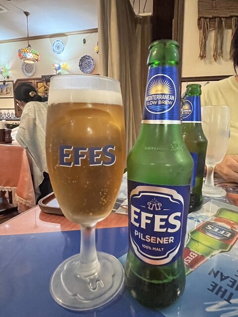 トルコビールは初めて、エフェスはフルーティな残り香がありつつもしっかり苦味があり味わいが深く美味い。ビールは一杯主義の尿酸値高めの私が2杯おかわりをするほどのモノ。