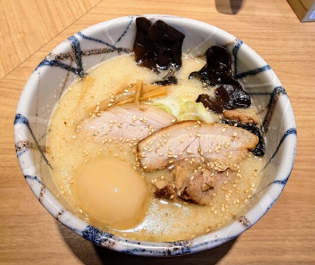 ◼️強烈な旨みの、魚介と洗練された塩とんこつ 丁寧に処理されたとんこつは臭みなど全くなく洗練されている。 香ばしい香りが立っている。 ・入店 19:10頃入店 先客0名 近くの翔本店が行列のためこちらに来た。 店に入った瞬間蒸気で眼鏡が曇る 自分が入るとすぐに次客入店。タイミ... 詳細を見る