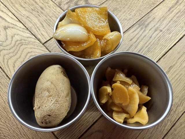 ジャガイモ スモークたくあん 玉ねぎらっきょう ルイボスティー コーヒー サービス中!