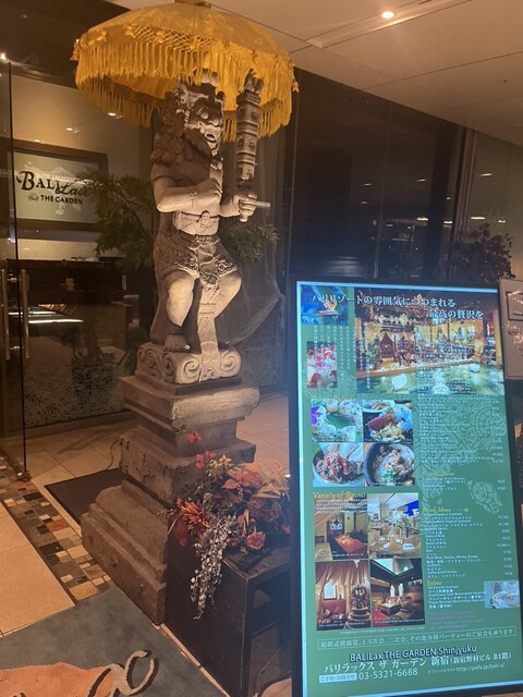 超オススメ‼️ 男2人で場違いかと思いましたが、良い感じでプライバシーが担保されていました。 「バリラックス ザ ガーデン 新宿」は、バリ島リゾートの雰囲気を都会の真ん中で味わえるのが最大の魅力。象徴的なインドネシアの彫刻や、水の音が響き渡る店内は、ビルの中にいることを忘れさせるほどの異空間。カーテンで仕切られた半個室や、テラス席など、シーンに合わせた席が選べるため、デートから女子会、団体で... 詳細を見る
