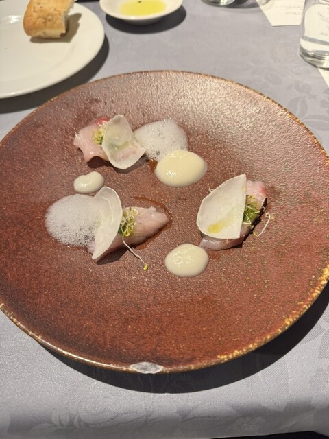 本日頂いたのはこちら、、、 ■Amuse(始まりの小さな前菜) ・アミューズ ■Antipasto freddo (冷たい前菜) Yellowtail Carpac... 詳細を見る